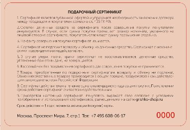 4.2. Держатель сертификата и ООО «Гришко+» путём приобретения сертификата заключают договор, согласно которому у компании возникает обязательство в пределах срока действия сертификата принять в оплату товаров сертификат в размере его номинала. При выдаче сертификата стороны тем самым договорились, что сертификат становится для них средством платежа. Данное средство платежа ограничено: